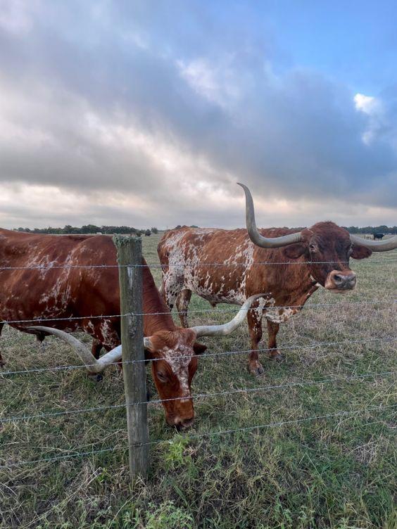 Male Texas Longhorn cattle are naturally raised